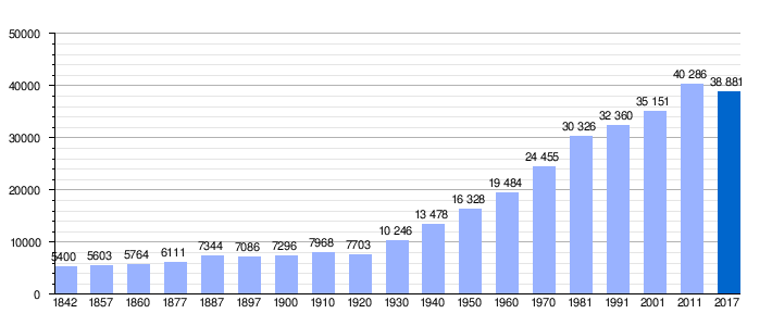 La población de la ciudad es de 38.881 habitantes, 18.332 hombres y 20.549 mujeres (2017), por lo que es la 49.ª capital de provincia por su población. Se observa un crecimiento constante de población durante todo el siglo XX.